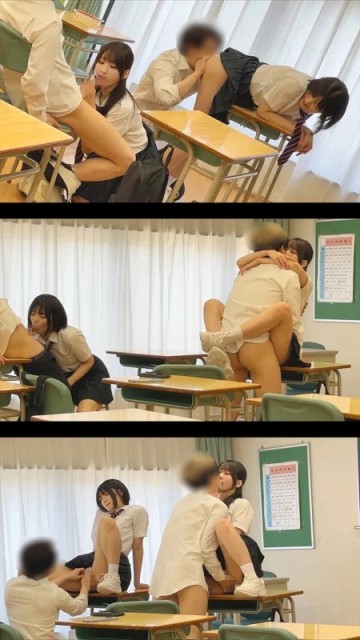 某高校で盗撮された流出映像。放課後の教室で仲良し2カップルがお互い見せ合いセ●クス!