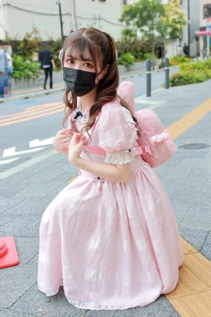 降車後、めちゃくちゃになったスカートやパンツを恥ずかしそうに直すタゲ。
