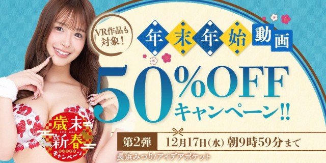 【半額セール】FANZA動画 年末年始50%OFFキャンペーン第2弾スタート!VR作品も対象!